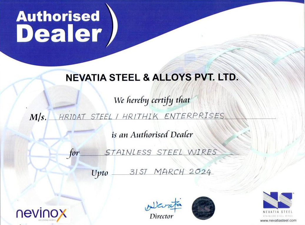 We, at Hrithik Enterprises and Hridat Steel, have been stockists for Nevatia Steel & Alloys Pvt.Ltd. since 2005 and 2011, respectively. In order to cater to our customers’ impromptu requirements as well as their schedules, we stock Nevatia Steel stainless steel wires in various grades, surface finishes such as bright and matte finish and conditions such as spring hard, half hard, quarter hard, etc in the size range of 0.10mm to 10.00mm.